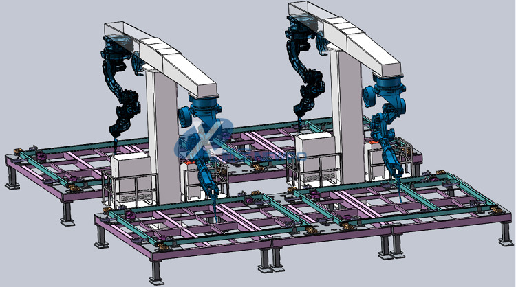 3. After completing welding at workstation one, the robot automatically starts welding at workstation two.
